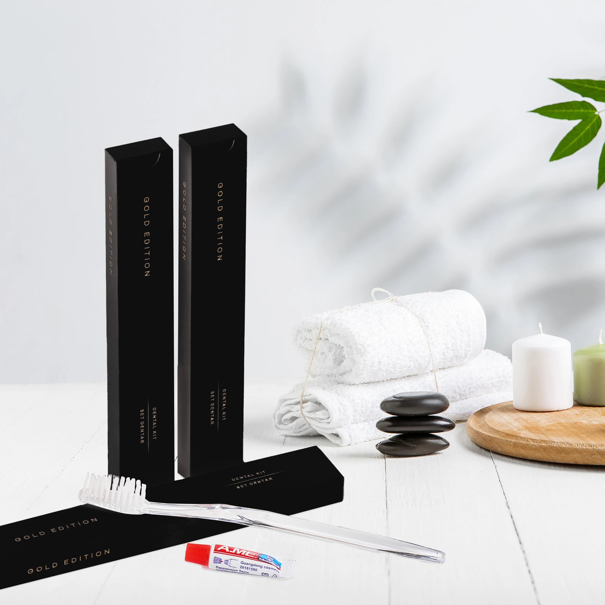 Alege rafinamentul si calitatea cu acest Set dentar – Gold Edition pentru camerele de hotel. O modalitate excelenta de a oferi oaspetilor o experienta de ospitalitate ireprosabila si de a contribui la confortul sederii lor.